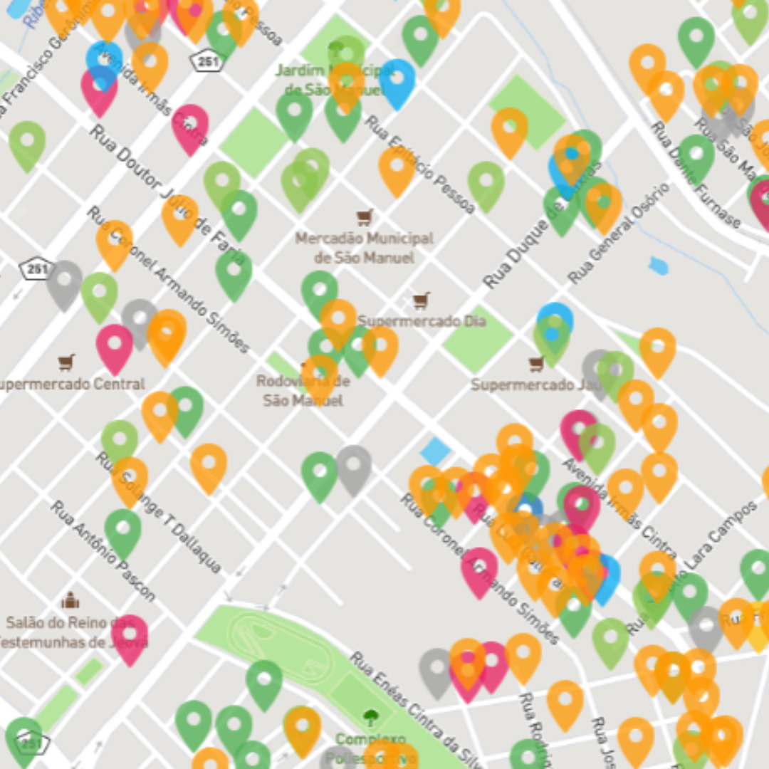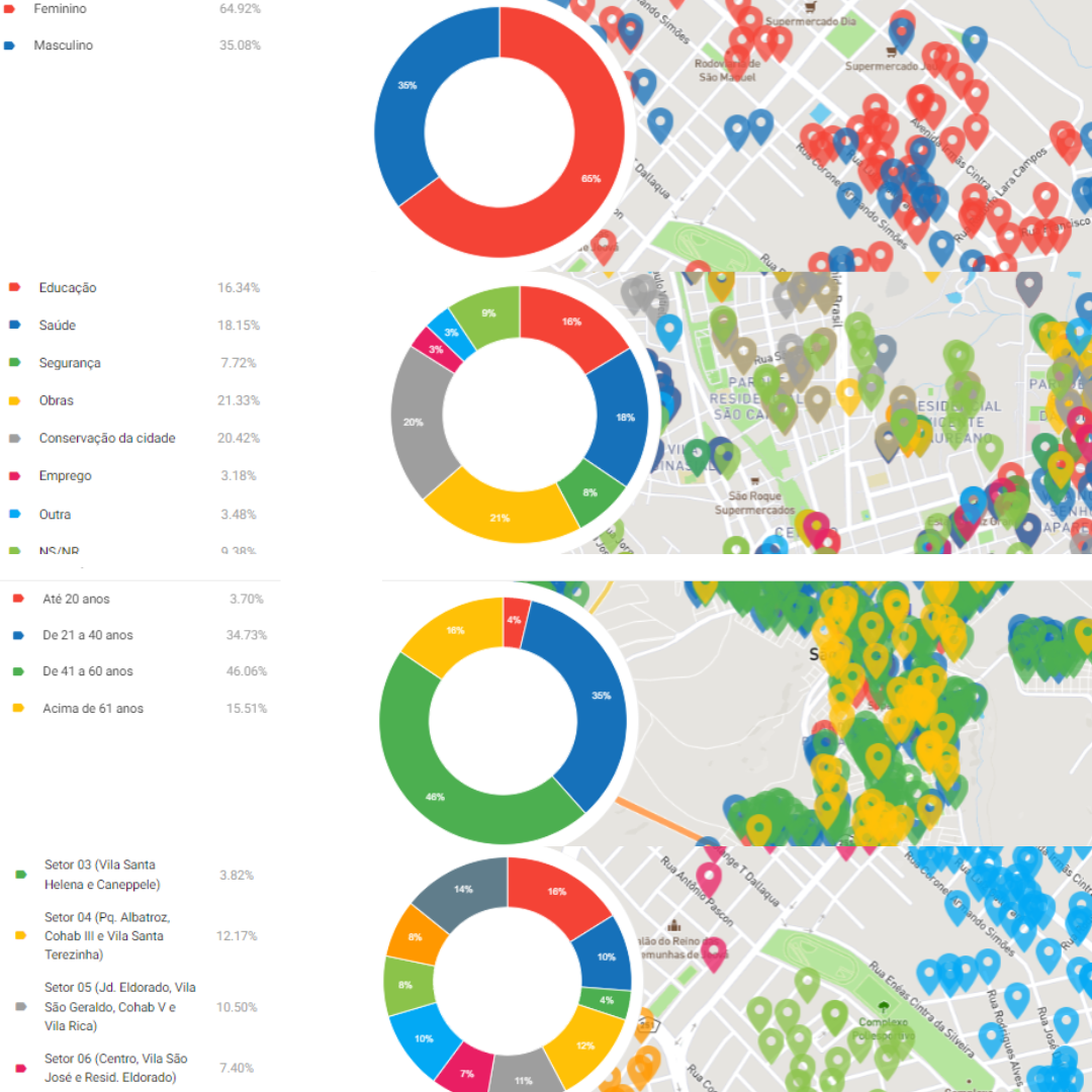 Visualização geolocalizada da coleta de respostas em cada região.